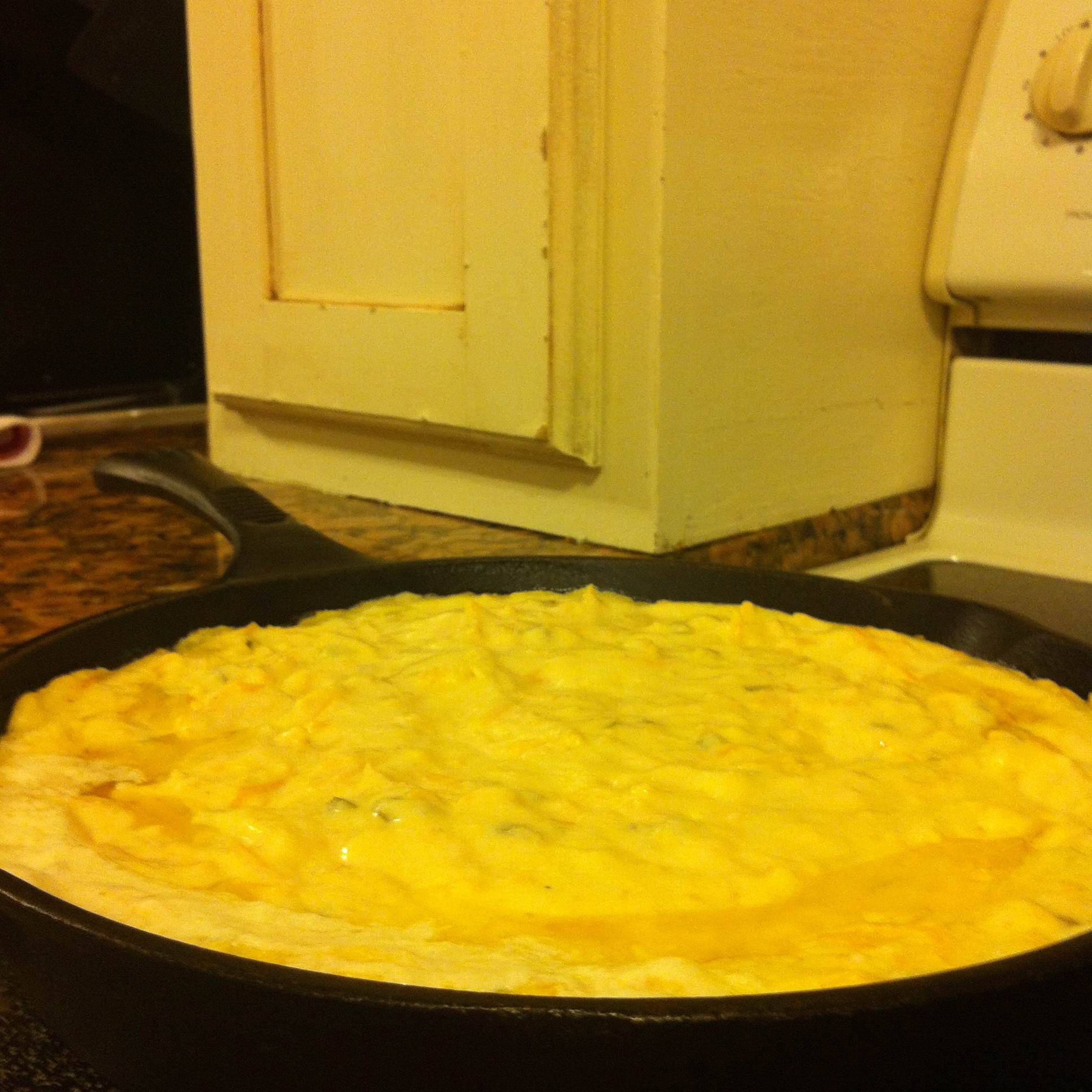 I like a 10″ pan but since you can divide the batter, any size will do! And it reheats well! You can use any combination of cheeses, parm and cheddar work well, tho, because of their sharpness. And if you don’t like heat, don’t add the jalapenos. Easy peezy.