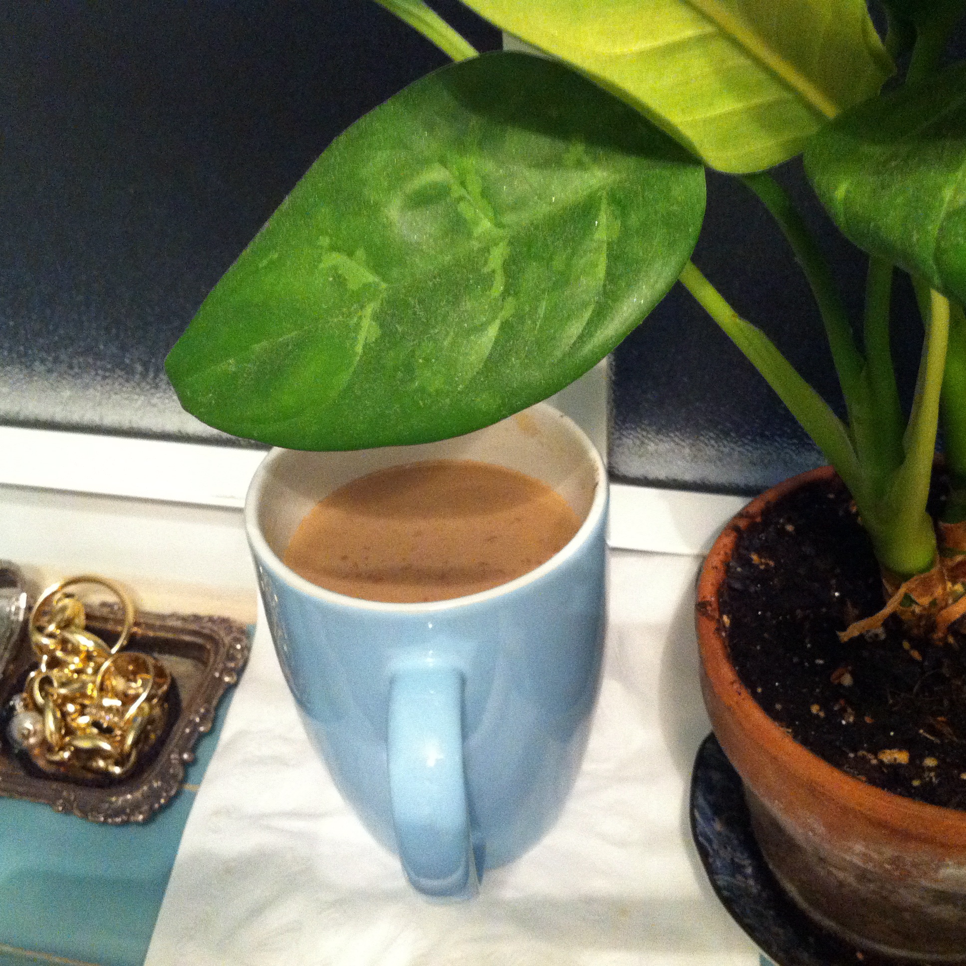 Boysie stills loves coffee drinks and I want him to know how to prepare a perfect cup or bowl in the morning. We like our coffee strong, French Roast is our favorite. Bagged and jarred coffee usually indicates the strength. We use a French press but a little Italian stove top espresso maker is just as good. We put about 1/2 cup of freshly ground coffee into the press then add the water, which has almost come up to the boil, and reaches an inch or so from the rim. 3-4 minutes later, the coffee is ready, if you take it black. Slowly push down the plunger and add milk and/or sugar. My milk to coffee ratio is somewhere between a third to a half of milk to a third of coffee. Gauge your amounts depending on your vessel of choice. Some people are okay with soy and skim milk. I’m not one of them. 1% milk is fine and I also really like the fat-free but tastes like 2% ones now out on the market. I heat my milk in the microwave after the coffee has been prepared. To my hot milk, I add the coffee, then sugar. Any coffee left in the pot or press makes a great iced coffee later in the day. And I always use a silver spoon. Did I tell you my baby drank ALL my coffee? Oh, yes he did!