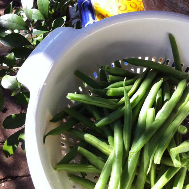 • 1 large bag string beans, washed and trimmed (that means snap off and discard the ends)