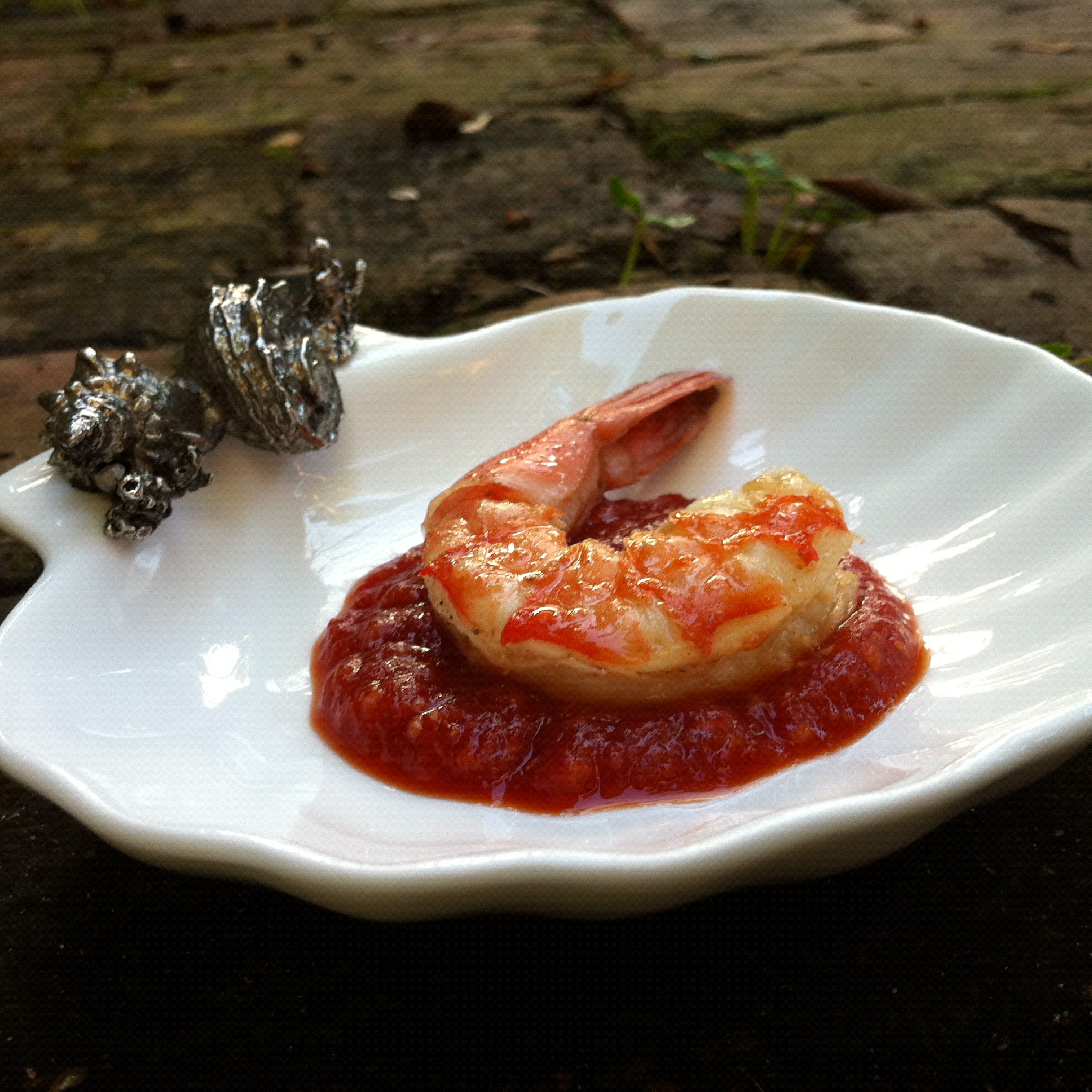 You’ll want to make your cocktail sauce first so it can chill properly. It’s unbelievably easy and tastes a thousand times better than bottled stuff. I love ice-cold shrimp so I prepare both sauce and shrimp in the afternoon to give both enough time in the refrigerator. I buy the largest shrimp I can afford and try to get the e-z peel ones as they’ve been deveined as well. One less step for me. I lean towards pick-up food to serve with it, since your hands get a little damp from the shrimp. So asparagus chilled with a lemon vinaigrette or haricot vert with the same vinaigrette pair with the shrimp nicely. Some garlic, whole grain crostini and, baby, looks like you’ve got dinner.