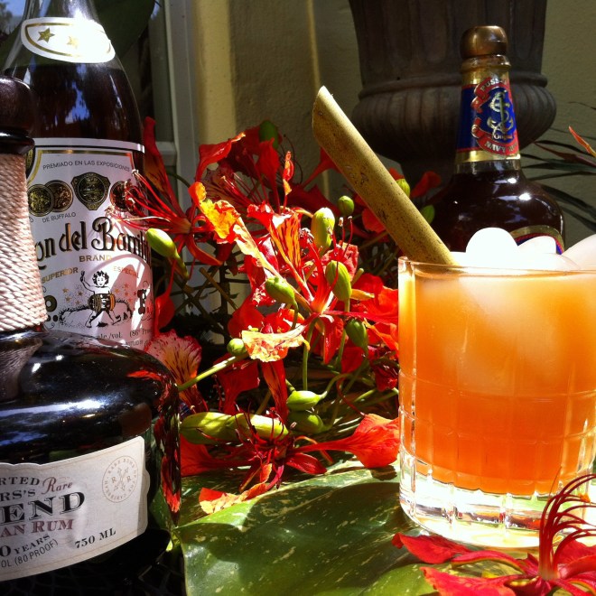 This is a great recipe for Rum Punch. I use it through the year and always Christmas morning. It guarantees that all will get along. Feel free to change the juices to your liking. The original recipe calls for just pineapple juice but I like pineapple-mango mix. An empty plastic water jug is perfect so if you think you’re going to be making this try to remember to keep the top. Make it a day ahead of when it will be served so it has plenty of time to chill. Respect it…it WILL knock you on your tail!
