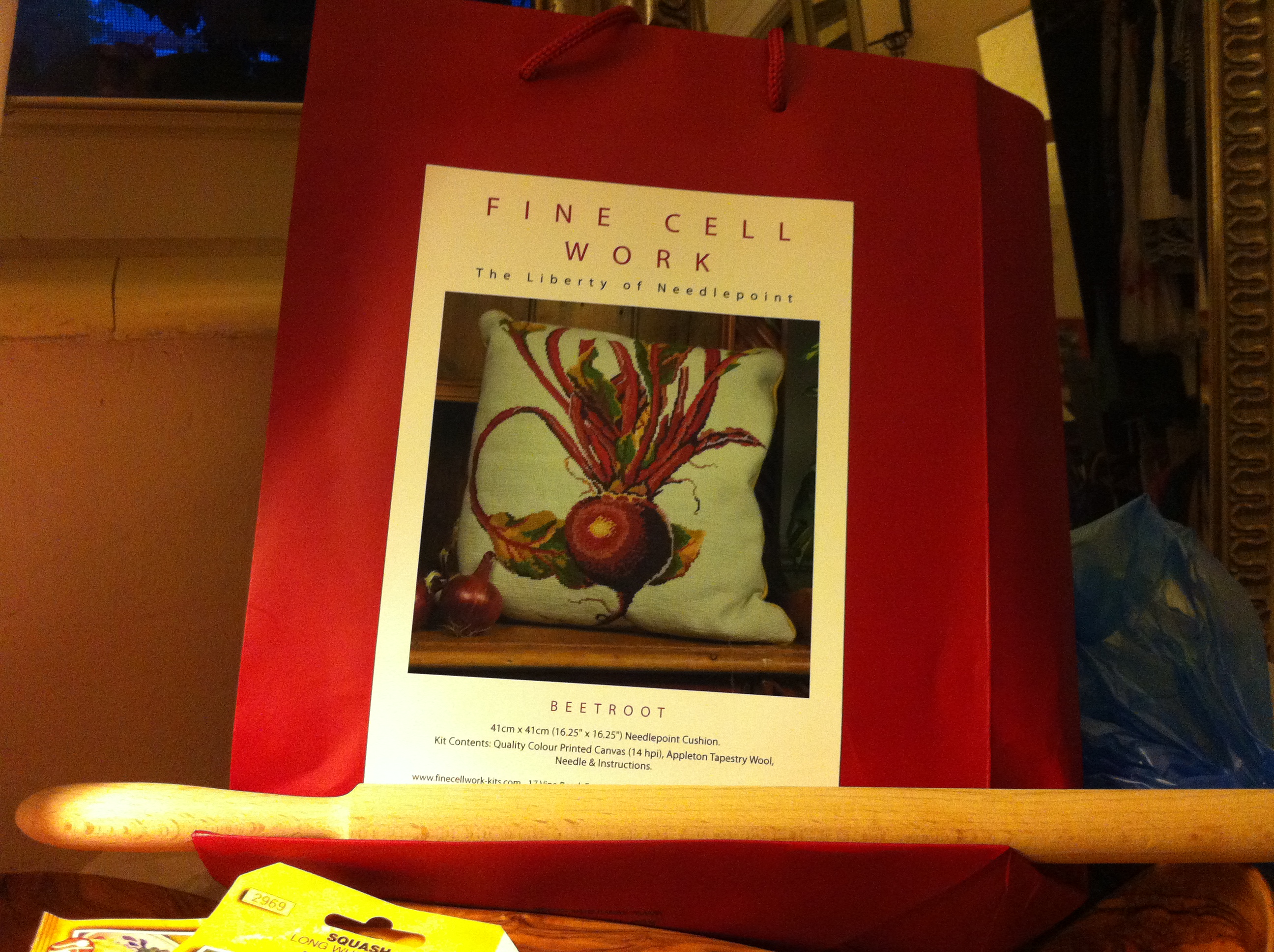 We even stumbled upon a shop which carried needlepoint canvases and pillows exquisitely stitched by prisoners in the British penal system.  Jimmy most generously sprang for a magnificent canvas of a beetroot, rich in purples and greens.  “Thankyousweetheart,you’rethebest!!!!!”  It’s what I always say but it’s true.