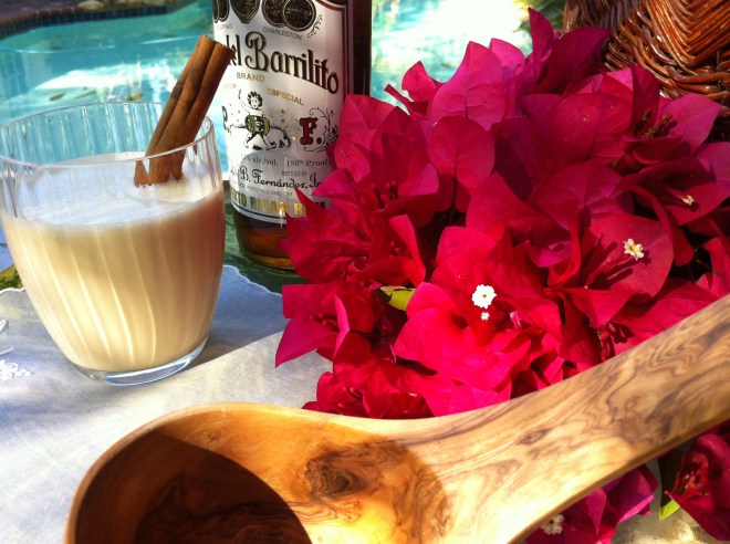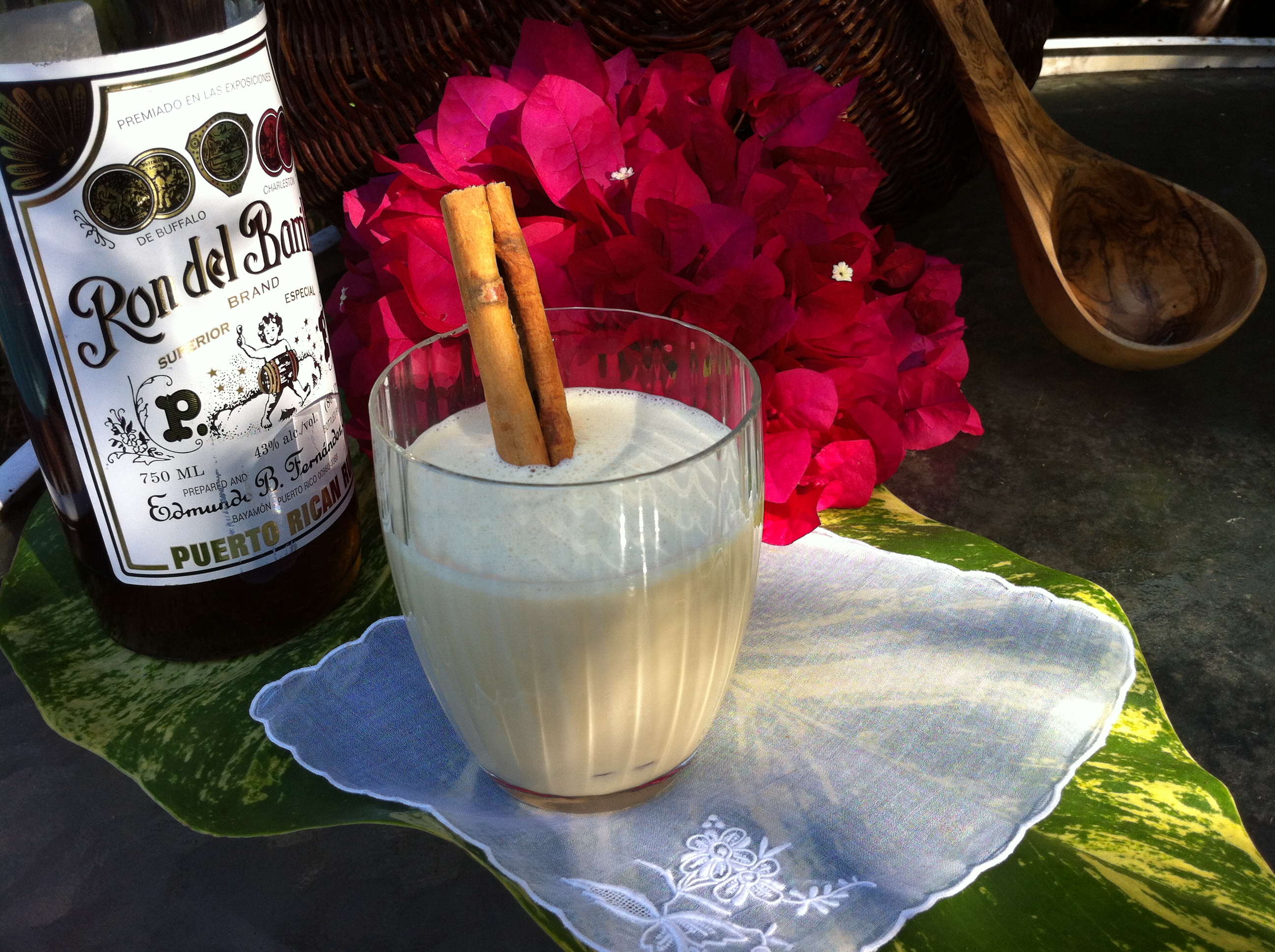 The house was a constant stream of activity with relatives, friends and neighbors stopping by to drop off a little gift and maybe have just “una copita”, just a little cup.  All through the holiday season were “parrandas”, surprise Christmas serenades.  Very late into the night friends and relatives would gather at a house and surprise the sleeping occupants with rousing song complete with all the sound effects from shaking tambourines and maracas, the whoosh-whoosh-whoosh of guiros and my favorite, the white wood claves or palitos.  People, I’ve got to tell you.  These were not songs like Silent Night or Little Drummer Boy.  They were get down, shake yuh groove thang, happy dance in your pajama songs!  The party would be served the island’s version of eggnog called a “Coquito”, they’d take some or all of the hosts and move on to the next house, the party getting bigger and bigger into the wee, wee hours of the morning.   We were never allowed to go with the party but it was enough just to have a band of merry makers singing and dancing, having the time of their lives as we watched from above.  As we got older we still weren’t allowed to go on with the parranderos into the dark night but we were allowed to partake of the holiday drink, the Coquito.  It’s luscious, rich and will become one of YOUR holiday favorites.  Buen Provecho!