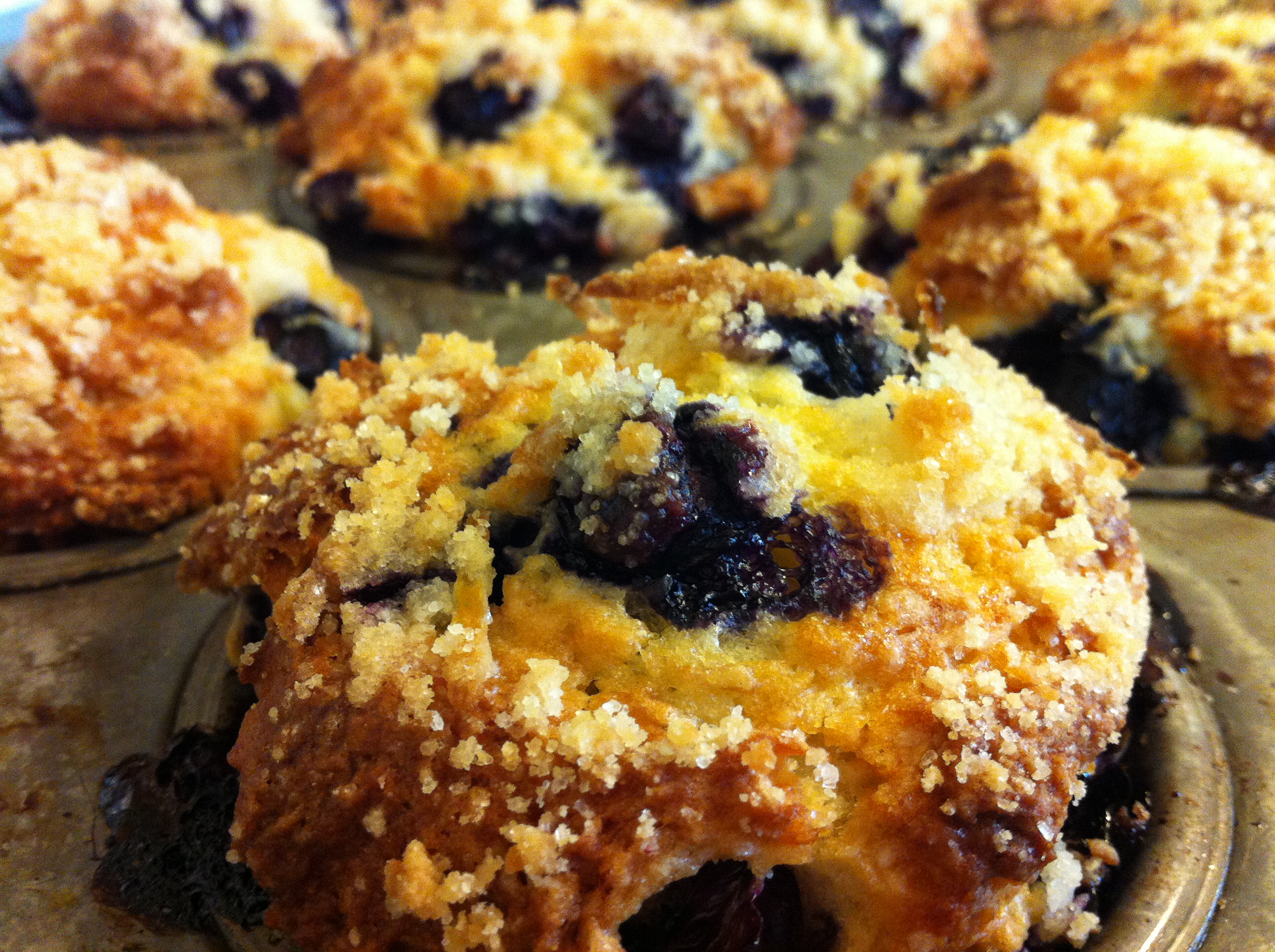 These muffins are magnificent! The addition of lemon zest makes them uber lemony and against the sweet crunch of the crumble topping? I’ve not had better. They’re super easy to prepare and quick also. The batter is quite stiff so resist the temptation of over working the dough. It’s fine if there are still some floury patches even after adding the berries. Wonderful hot out of the oven they are even better the next day!