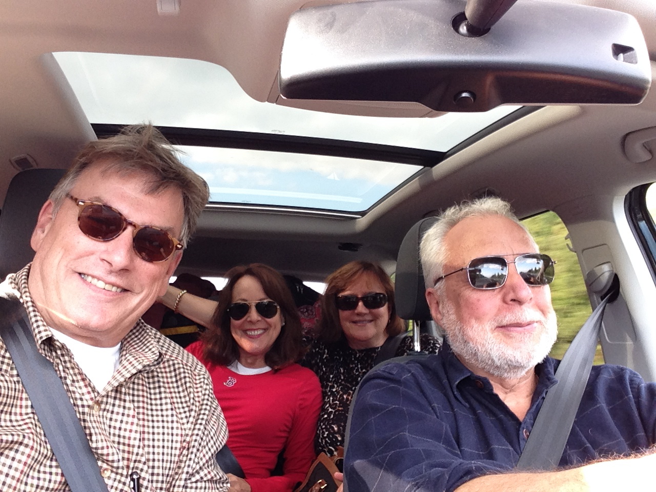 Everyone loves picnics but, really, how often do we go on one? Not nearly enough, tho, when on vacation and you find yourselves spending over $100.00 every night for dinner for two, one finds ways to cut back. That said the four of us, Stephen and Selene, Jimmy and I, established picnics on countless sunny lawns many vacations ago. Picnics are just wonderful! Not only does one save beaucoup €’s but you’re also creating delightful memories. Lunches in restaurants can be quickly forgotten but a picnic? Well! It’s almost always an adventure! Here are some tips that will almost guarantee your pique-nique abroad to be a crazy success! Before leaving Stateside pack several pocketknives and corkscrews in your checked luggage. If in France and you need to buy some, Laguiole is the brand you want. They make a super efficient product and are incredibly handsome. And you’ll use them at home. You’ll need them for saucisson, cheeses and fruit. Walking about the town of Arromanches-les-Bains, Selene and I found the French version of Home Goods and popped in. Four lovely, etched wine glasses later we had our future lunches and wine hours well set and we spent only 2€ per stem. As we were driving through the outskirts of the town of Bessin we spotted the Gallic equivalent of our super WalMart. (I’ve never been in a super Walmart, however, this is how I envision it but just loaded with a bunch of crap from China.) Holy Moly! They had huge flat screen television sets alongside cases of wine in gorgeous, wooden boxes next to Hello Kitty bath mats and pocket calculators. Kind of weird but that was all incidental to me. I was focused on the food end and was NOT disappointed. Loaves of country bread were out and HOT from the oven. We grabbed one and threw it in the basket, we meaning Selene and I. Head after ruffly head of soft, green, butter lettuce peeked through wooden, stand-up display cases. A crisp bunch of brilliant pink and white baby radishes sashayed straight into my basket. Not only would they add crunch to our mid-day repast but they would look good, too. And those radishes knew it! Crunchy apples and pears would round out out the meal and fruit would be easy to carry. We made our way to the cheese and prepared meats case. O.M.G. is all I can say. Påté after påté, terrine after terrine. Small rounds and pyramids of artisanal cheeses rested on freshly cut hay and richly colored Autumn leaves. And they just went on forever each boasting a more gorgeous, elaborate label than the previous. All this, in their version of WalMart. Boy, do we here in the US have a lot to learn! We chose several cheeses using the same method of choice that I use for wine. The label. The prettier more elaborate, the sooner it will find itself rolling around the bottom of my basket. I picked out a few cheeses and saucisson while Selene chose a few bottles of LOCAL wine. I also asked that the saucisson be sliced…way easier than wrestling with it on grass. We picked up a case of water and a roll of paper towels. And I think we were all set.