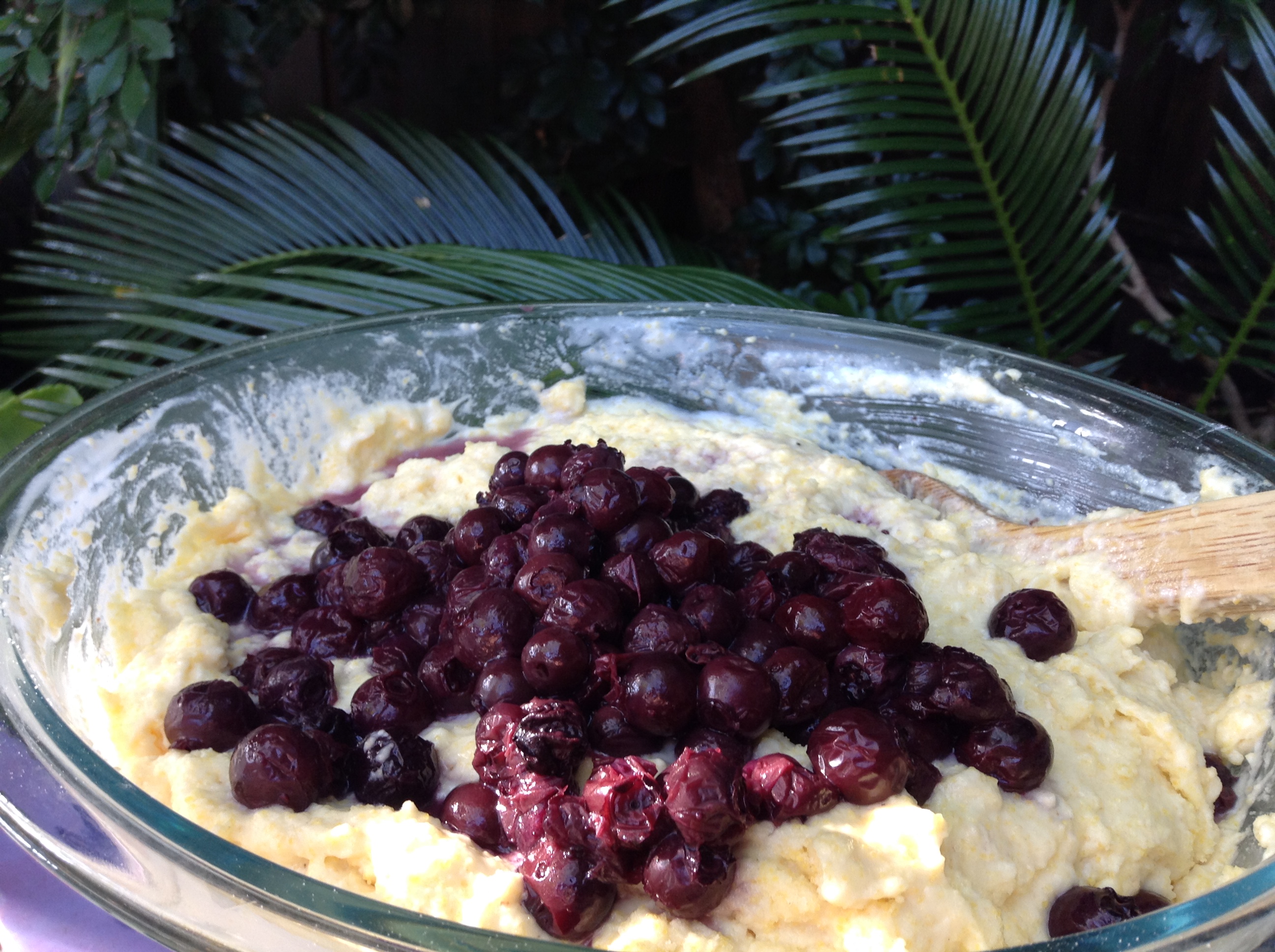 - Very gently fold in drained blueberries, trying not to break the berries as they’ll stain the batter purple.