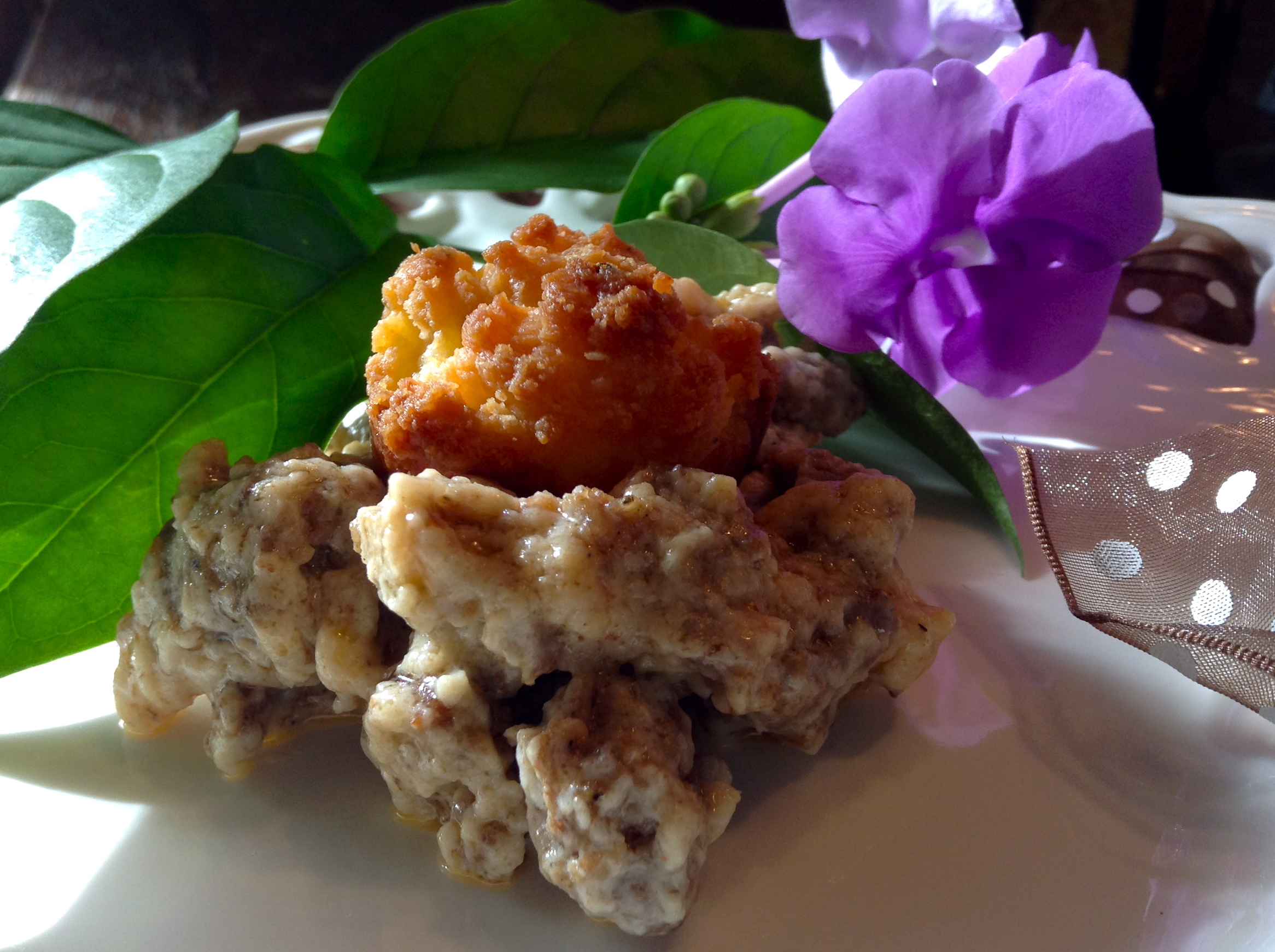 I’m a fool for carbs. One could easily call me a carb slut. Really. And at Thanksgiving and Christmas they’re not lurking around the corner. They are EVERYWHERE and, for some reason, at this time of year they’re even better than usual. I know many of you aren’t comfortable baking but this recipe for Mini Savory Biscuit is absolutely, positively, without a doubt foolproof. Word of honor. A good self-rising flour will change your life completely. I’m partial to White Lily. So many of those gorgeous recipes you see on Pinterest are made with self-rising as is this one. These biscuit melt in your mouth with or without gravy, butter, maple syrup or cranberry sauce. And they only call for a handful of ingredients. They’re drop biscuit so there’s no rolling out. How’s THAT for feeling secure? I’m telling ya. Self-rising flour is on your side! You have to have some sort of bread on the table during the holidays and these fit the bill. You can easily split them and slather them with dulce de leche. Straight out the oven they beg for a slow drizzle of honey. And you can add seasonings to the batter to make them savory. Doesn’t splitting a piping hot, savory biscuit in half and tucking in a sliver of baked ham sound like just what the doctor ordered on Black Friday after shopping since 1 a.m.? Hell, yeah. And the batter can sit in your refrigerator for three days so you can bake these off in a flash whenever you need them. They’re so small they’re almost like poppers. And they’re highly addictive so watch out! But I’ve used today a reduced fat cream cheese and they’re STILL melt in your mouth good. Experiment with them and add to the batter which ever seasonings make you happy. Add chives or red pepper flakes. (Btw, red pepper flakes and honey go REALLY well together!) Freshly cracked black pepper or Cajun seasoning. Knock yourselves out. I know I do! Chop and roast a handful of pecans and throw those bad boys into the batter. You know it’ll be good. Keep in mind this recipe yields 2 dozen BITE SIZE biscuit. I ate 4 (four) just waiting for them to cool off. So make a lot!! Fair warning!! A few moments ago I learned that two of my nieces, Annie and Meggie (AKA the Tinies) are spending the night tonight. They’re runners, cross-country, and coming back from States where their school did extremely well. Annie didn’t run because as a high school freshman she’s JV but Meg is Varsity, she did run and came in 4th! Anyway, they’re spending the night and I thought I’d serve these little magic biscuit tomorrow for breakfast with homemade sausage gravy and freshly sliced blood oranges with fresh pineapple and strawberries. They’re VERY girly-girl so they’ll appreciate pretty fruit. I’m so pleased!! It’s a slumber party!!