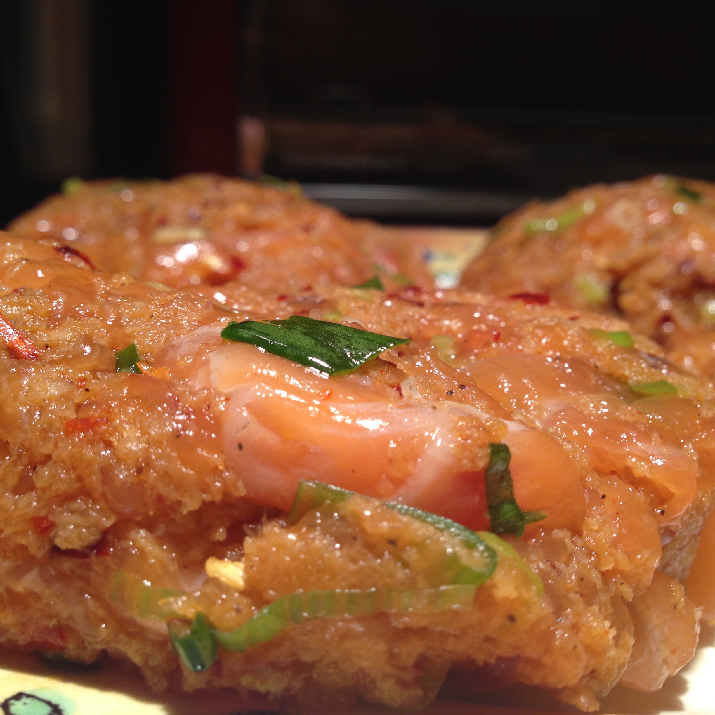 - Without overworking fish, combine salmon with panko mixture until all ingredients are evenly combined.