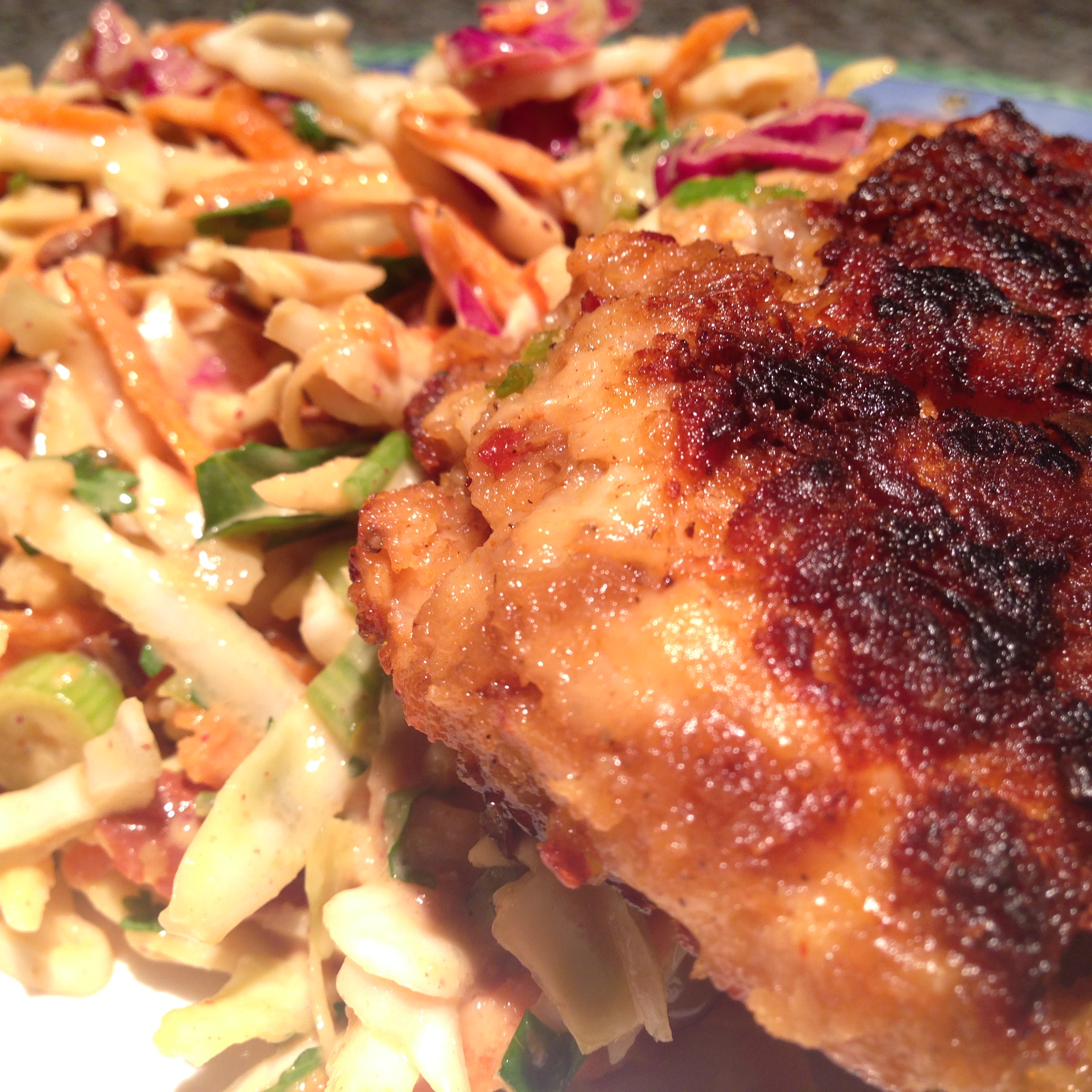 After a workout on Commonwealth Mall and catching up with all my SoFlo peeps it was time to prepare dinner. I put together a quick Asian style slaw to serve with the open face burgers so we wouldn’t miss the buns. Totally fooled my stomach! And they came out great. I’ve since discovered uncooked salmon burgers freeze extremely well so keep that in mind when salmon goes on sale. Make some for dinner and throw a few in the freezer for the nights you come home too tired to cook. Life is good.