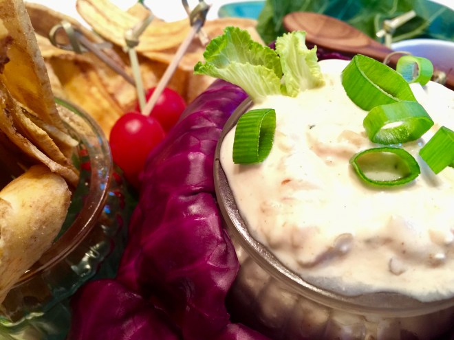 This recipe makes quite a bit which is great for a party but if you don’t need that much, it’s easily halved.  It’s an incredibly flavorful appetizer so if you’re not a fan of heat, rest assured the cayenne pepper may be omitted and you’ll still have a fantastic dip.  Take your time caramelizing the onions.  You don’t want them to burn but to release their liquids and sugar.  Give them a good stir every now and again, cook them uncovered letting all excess moisture evaporate and you’ll achieve the flavors and consistency you want.  I tried a mess of chips to see which really brought out the flavor of the dip and this is my conclusion.  The best potato chip turned out to be Kettle Chips.  They were sturdy enough to stand up to the stiff dip both in structure and potato taste.  But my number one chip pick wasn’t a potato chip but a plantain chip.  Holy smoke!  They really complemented each other, not to mention, the plantains were much better looking.  In closing, I hope you’ll take the time to search out Vidalia onions as their sweetness truly stands out and makes a huge difference in this dish.  Enjoy!