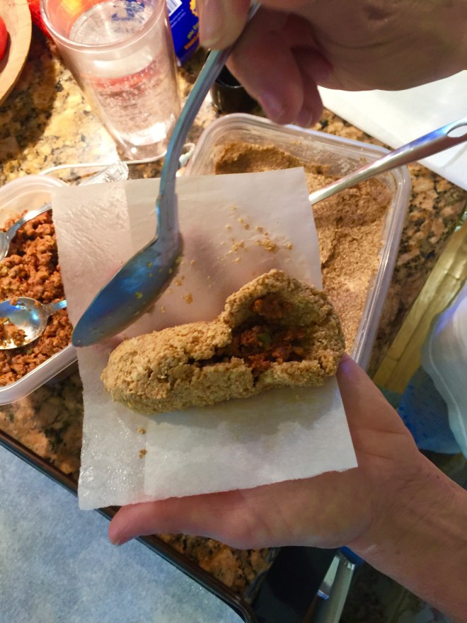 - Top the middle of the mixture with 2-3 teaspoons of the ground beef mixture.
