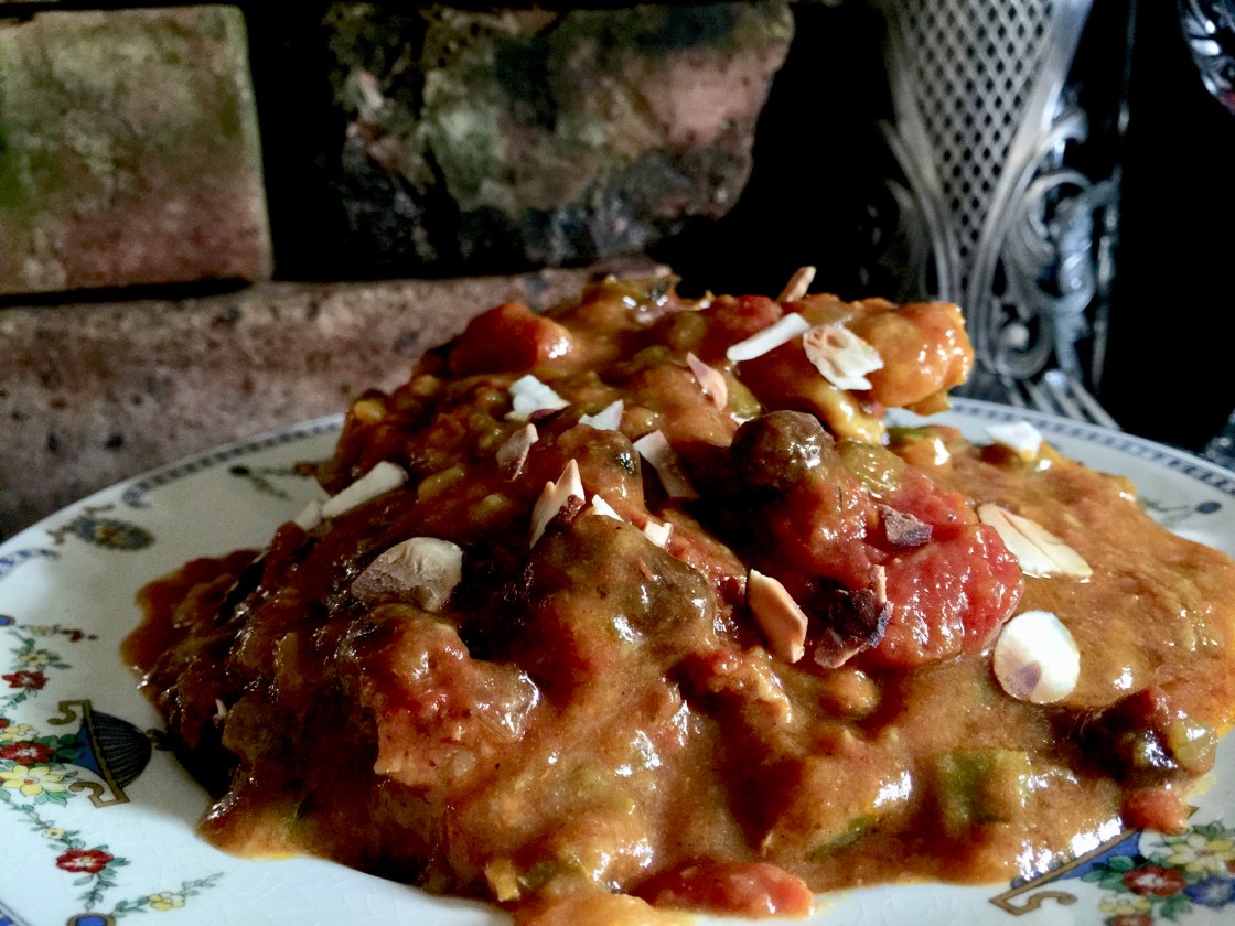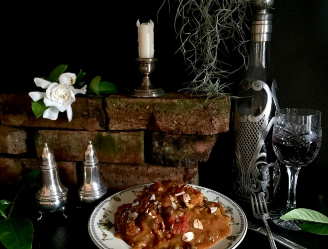 Country Captain is an easy dish, perfect to prepare for festive gatherings or Sunday dinner. Served over fluffy, long grain rice, this chicken dish is also great prepared in advance and here’s some more good news. The flavors really bloom and become full and mellow the following day so leftovers are a delight. Country Captain is not a spicy dish but a perfectly seasoned one. It hails from the South, specifically Georgia, and is a favorite throughout the state served often at brunch and on stately sideboards.. I suppose we can thank all the curry spices coming into the port of Savannah. This aromatic one-pot stew is well-rounded and flavorful, dotted with green peppers, onion and garlic, bits of sweet tomato and fat raisins. It is truly a delight. I brown in butter both skinless boneless chicken breasts and thighs to add more of a rich flavor. The thighs also add to the richness and, in the end, everyone seems to get the piece they want. Country Captain can be prepared in a high-sided skillet or a heavy bottomed dutch oven. I use both. Either golden seedless or the common brown raisin may be used with excellent results and the recipe doubles easily. I hope for your next gathering you’ll try this dish. It’s quite the celebration!