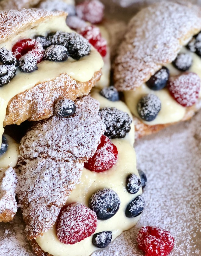 - Serve over split croissants with fresh berries and a dusting of confectioner’s sugar.