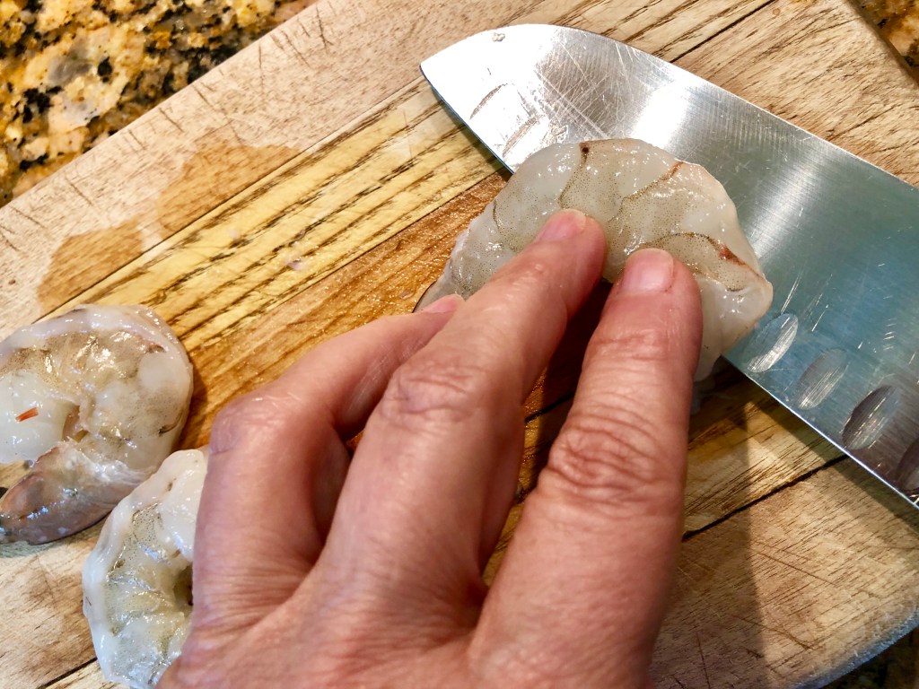 fullsizeoutput_2270 To butterfly shrimp, carefully cut through the shelled body of the shrimp but not all the way through. Share this: Click to print (Opens in new window) Print Click to email a link to a friend (Opens in new window) Email TweetLike Loading...