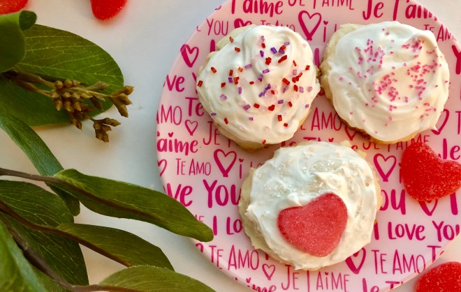 Just in time for Valentine’s Day are these eye-rollingly good cream cheese cookies. Not only do they melt in your mouth in a tangy, rich puddle but they’re one of the simplest cookies to bake. The bottom of these cookies bake up to a soft golden color, however, the tops remain white making them easy on the eyes peeking out of the cream cheese icing. And the icing…wow. Gives the cookies a whole new meaning. I was a bit let down when I tasted one straight out of the oven but I made myself remain impartial, wait patiently and calmly until the cookies cooled and then sample one iced. Jeez Louise. As I write this I’m flat, horizontal, on a tens unit getting over a thrown-out back. I want something sweet and, as I lie here, I’ve done a mental inventory of what’s in my kitchen and what I have hidden away and, sob, I know there’s nothing, nothing that appeals to me right now except these cookies. Not too sweet, the memory of their taste is seared into my memory bank. And what a lovely memory it was.