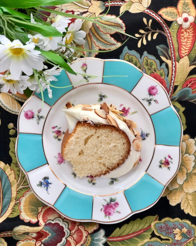 I found myself so…. directionless the Tuesday after the wedding. Tired and feeling the heavy blanket of sadness, I decided to bake a cake. That always makes me feel better. This is what I came up with. It’s a super easy cake which, like so many pound cakes, is better the next day. If you’re not a fan of icing, a light dusting of confectioner’s sugar will dress the cake up nicely enough to serve to company. Without icing it freezes beautifully after having been carefully wrapped to avoid freezer burn. The recipe calls for soft wheat flour. Two brands which I prefer are first, White Lily and second, Martha White. If soft wheat is unavailable, cake flour is a fine substitute. Oh, and one more thing. When greasing and flouring your pan try to use shortening instead of butter as butter browns and burns more easily. Also, use your fingers to make certain every nook and cranny of your Bundt pan is covered with the shortening followed by a very light layer of flour.