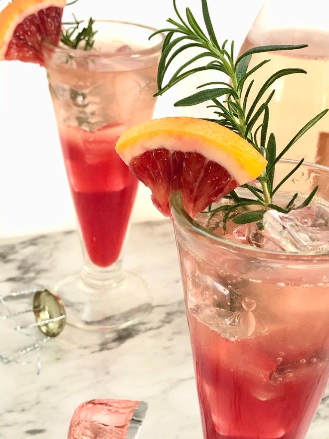It’s the season, y’all. Blood oranges are here and this is wonderful way to glorify their season from December through May. I’m mad about blood oranges. I use them in cakes, rice pudding and cocktails. The juice is gorgeous, light and sweet in salad dressings and marinades and cooks down to a thick, ambrosial syrup. Oranges were always a staple in our house while growing up, as were apples. Those two fruits were my mother’s answer to any hungry child. And we were aways hungry. At my best friend, Dana’s, house, a snack consisted of a warm and crunchy grilled cheese sandwich with a tall, frosty glass of iced tea on the side to wash it down. Heaven! But not in our house. No. In our house my mother’s idea of a snack consisted of an apple, orange or grapefruit with a tall, tepid glass of tap water to wash it all down. You can peel and section it yourself, too.I know I paint a pretty grim picture… food could not play a large part of family life as it was never a big deal to my parents. There was no baking during holidays nor did my mother cook for any of her parties. I don’t think my mother EVER baked a cookie. Or a cake. Pies were different. Every once in a blue moon, and I mean a seriously cobalt moon, Mama would bake a frozen apple pie and we would each be served a narrow, scrawny slice. The four of us made our dessert last as long as possible, savoring every teeny-weeny, itsy-bitsy bite. But back to this lovely drink. It’s deceivingly delightful and refreshing. It CAN pack a wallop. More or less rum may be used than the recipe calls for, the only stipulation being, please use a good, sipping rum. I use either a sparkling rose or a sparkling white wine. If it’s an emergency a sparkling red can be used but it IS kinda heavy. The punch may be served in a formal punch bowl, rocks glasses, champagne flutes or red solo cups, it know no bounds. Crisp, bubbly with the merest hint of sweetness, this mixed drink knows how to roll with it. A pitcher or jug may be filled right before serving or each drink may be assembled individually as there are only three ingredients involved. I’m a huge fan of punch, whether for a black-tie affair or a football tail-gate party and this drink will not let you down. Cheers!