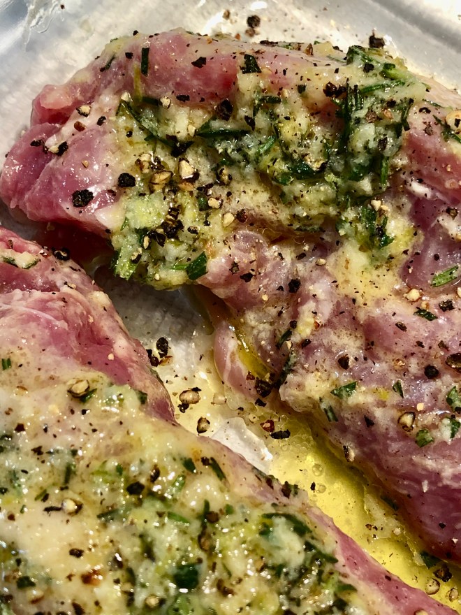 This week I walked into a little market by the name of Publix and, you guessed it, pork tenderloins were on sale.  I thought to myself, “You know, we haven’t had these in years.  Maybe I’ll pick up a couple.  Lord knows, Jimmy’s got to be sick of chicken or fish and salad every darn night.’  Into my basket they went.  Rather than that beat soy sauce marinade I had used forever, I prepared a marinade used throughout Greece on all kinds of meat and fish.  It’s clean and light; healthful and bright with flavor.  The combination of rosemary, lemon and olive oil is perfection on grilled chicken, beef, fish and pork.  The rosemary is interchangeable with oregano, the much loved herb used on souvlaki.  There have been times when I was caught without any lemons in the house and I used fresh limes instead.  Yay for us because there is no difference in flavor.  That said, the marinade tastes best when the meat or fish is grilled.  Cooked stove top or in the oven simply doesn’t cut it as you get no crispy, charred bits and since pork tenderloin is so very lean, it’s super easy to over-cook.  I hope y’all try this quick grilling hack.  Paired with a big, fat salad, you’ll think it’s summer.