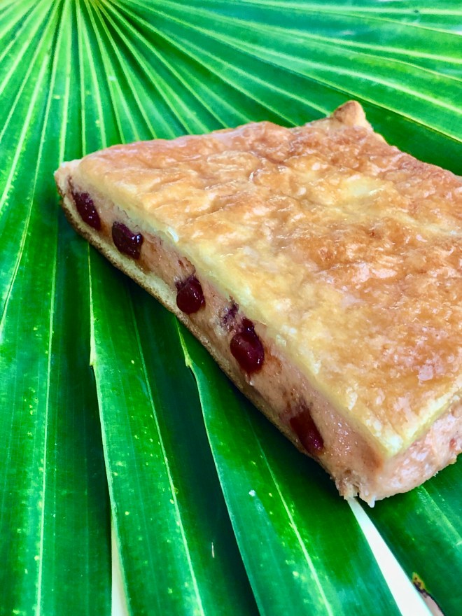 If you want to make life better, bring guavas into your world. Often people say that guavas taste like a cross between a ripe pear and strawberry but to me… well, it’s just guava. Guavas are heavily perfumed when ripe, with their own distinct aroma. In the islands and even here in south Florida, one can be knocked over by the fruit’s musky, sweet aroma when first entering markets, both closed and open air. My little brother, Tommy, hated the scent as a little boy in our grandparent’s home in Puerto Rico. Not me. One sniff of the stuff and I am transported back to our island kitchen. As a little girl my heart gave a little skip when I spied our grandmother pulling out “the big pot”. That meant guava paste and jelly was the project of the day and, if I was on best behavior, there was a very good chance I might score a taste. As the day progressed, the enormous cauldron bubbled away on the stove filled with fresh, halved guavas, way too much sugar for anyone’s good and a splash of water. The bouquet of the thick, simmering, fruit lava was released each time a fat bubble gurgled to the top of the pot, hinting at the exotic pleasures to come. I adore guavas. Achingly sweet, guava paste is a heady, too good to be true food, much like sweetened condensed milk… absolutely perfect. A stolen teaspoon of sweetened condensed milk never lets me down, is glorious and unequaled, just like guava paste. No one makes guava paste from scratch anymore. With thick blocks sealed in airtight plastic readily available in markets and grocery stores, there is no need to heat up your kitchen, struggle with straining the seeds from a weighty pot to then make room in the refrigerator for gallons of paste or jelly. I typically keep two or three blocks on hand. This is my kind of pantry staple. In Puerto Rico guava pastries are popular and widespread and can be found everywhere, from bakeries to gas stations . They are typically enjoyed with strong, fragrant local coffee for breakfast or with a double or triple shot of espresso as a late morning pick me up. Horrible for you but infinitely satisfying. This recipe is a snap; it’s quick to prepare and easy to assemble. All the ingredients are some of my pantry staples i.e. refrigerator ready to bake crescent rolls, guava paste and cream cheese. Guava and cream cheese danish is perfect to serve at a brunch or with Sunday breakfast. It can be assembled in advance and served hot or cold. It can be presented in small, three-bite squares or sliced into larger portions. You’re the boss here. But have it with your favorite coffee. They go together perfectly like gin and tonic or bacon and eggs. Buen provecho!