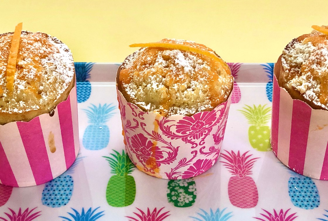These little muffins are pure citrus sunshine. They are pretty low in fat and sugar and are just the ticket with a cup coffee or tea for breakfast or an afternoon snack. Really the only thing to keep in mind when preparing is not to over mix the batter. I literally count the number of passes I make through the bowl when mixing the wet with the dry and the magic number for me is no more than 15. This will leave your batter with countless lumps and pockets of loose flour but I promise the muffins will work their way to perfection in the oven and will come out of the oven faultless. Somehow the lumps and dry flour fade away to nothing. It’s hard to leave the batter as is because our natural inclination is to stir until smooth and pretty. However, over mixing will yield a tough, dense muffin which will lead to disappointment. Fight the urge! A glaze may be drizzled over the muffins after baking but I don’t think they need it. A light sprinkle of confectioner’s sugar is all it needs and even that is unnecessary but it does look pretty. Two large navel oranges will give you all the juice and zest needed for the recipe and will leave you with a little extra leftover fruit. I call that my baker’s treat. Enjoy.